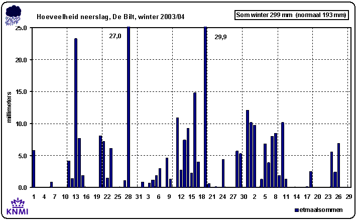 tegen 193 mm normaal. Daarmee eindigde deze winter op de vijfde plaats