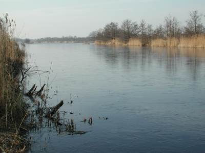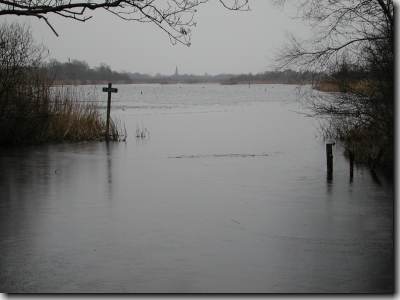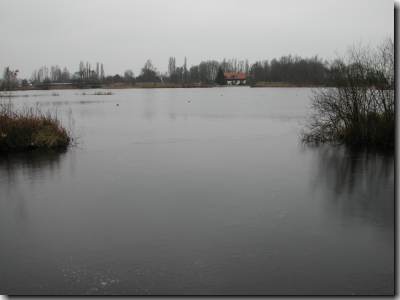 Het eerste grote water aan de rechterkant van het Bergse Pad: grotendeels nog open. |