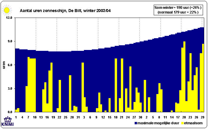 uren. In De Bilt werden 190 zonuren geregistreerd tegen normaal 179.