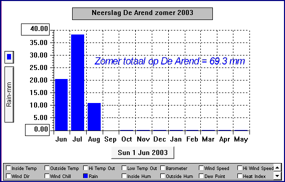 Weerstation De Arend was nog iets droger met 69.3 mm.