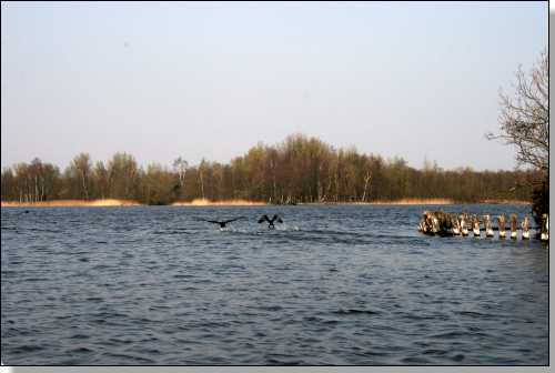 foto: Mike E. de Boer Verstoord "Ik stoorde de Aalscholvers gisteren tijdens het zeilen. Locatie 'in de wastobbe', genomen richting de Oostelijke Drecht." (M.de B.) |