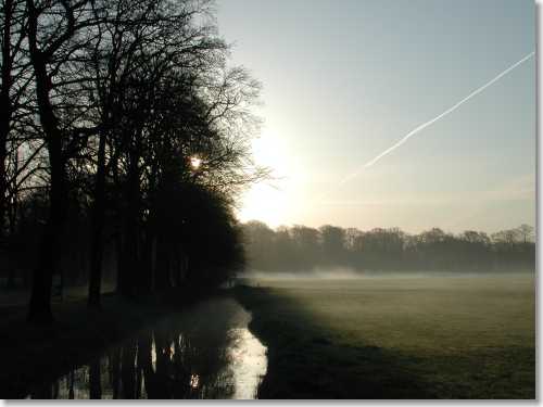 Foto: Rene Scholtes Zonnig èn mistig De start van de dag in Kortenhoef en omgeving was zowel mistig als zonnig. |
