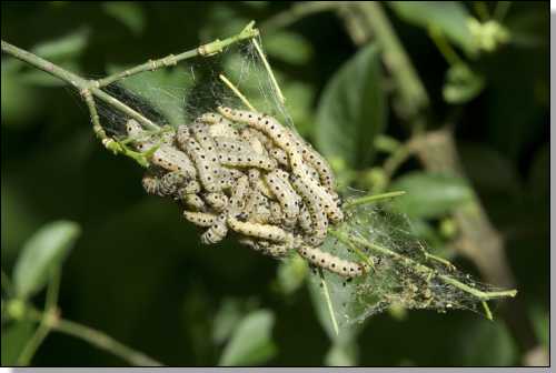 foto: Paul Wallenburg Rupsenkolonies "Ieder jaar om deze tijd worden mijn kardinaalsmutsen geteistered door rupsenkolonies. Het is de rups Yponomeuta Irrorellus, deze wordt eigenlijk geen vlinder maar een mot." (P.W.) |