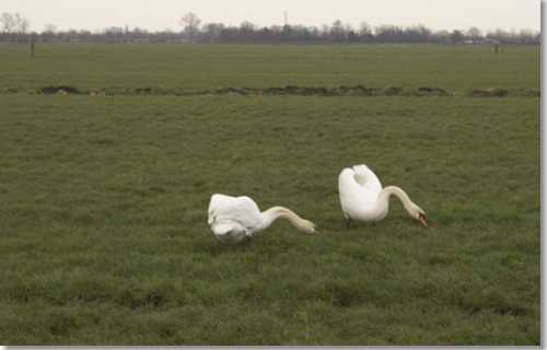 foto: Ariejan Groenewegen Dammerkade "De familie zwaan aan de wandel bij ons in de tuin. (Barthold