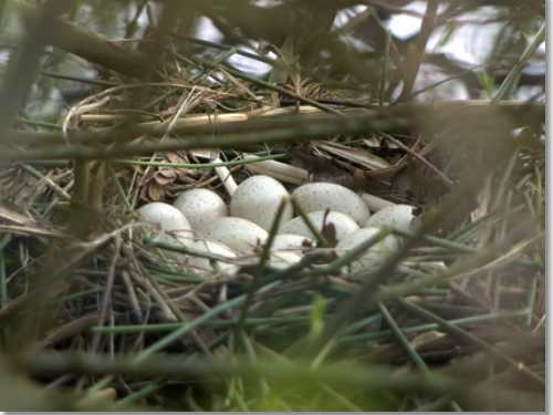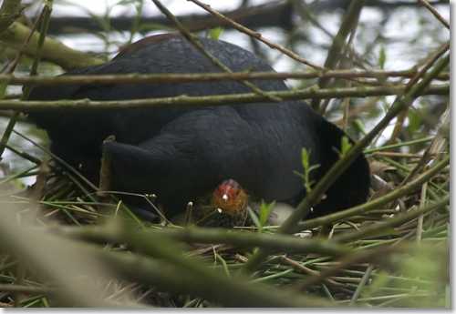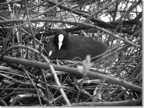 foto: Meerkoetnest "Mijn meerkoet-buurvrouw, die op 2 meter afstand van mijn computer ligt te broeden." (P.W., Nederhorst den Berg) |