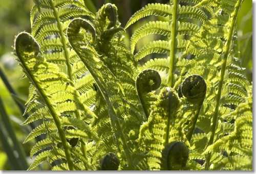 foto: Ontkrullende varens De namiddagzon door zich ontkrullende varens te Nederhorst den Berg |