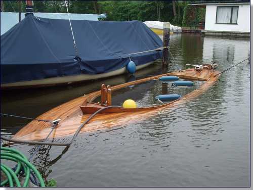 foto: Mike E. de Boer Erg nat Gelukkig geen gevolg van het huidige weer, maar noodzakelijk voor het dichttrekken van de romp voor het nieuwe vaarseizoen.