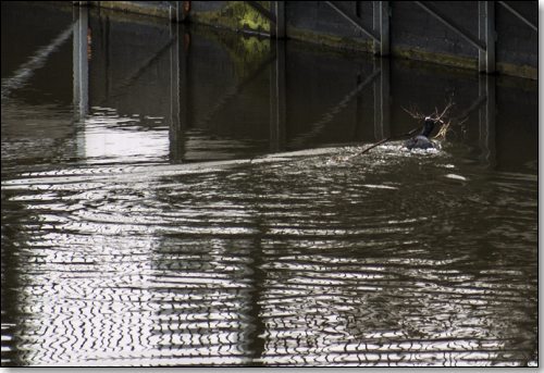 foto: Meerkoet aan de arbeid aan de oever van de Vecht, |