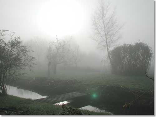 foto: Jos Werkhoven Weerstation De Arend, Koninginneweg te Kortenhoef Een zwakke zon die door de dichte mist probeert te prikken. |