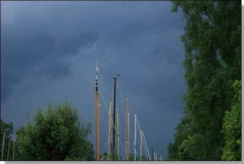foto: Mike de Boer Donkere wolken Donkere wolken pakken zich samen boven jachthaven Het Anker te Loosdrecht. |