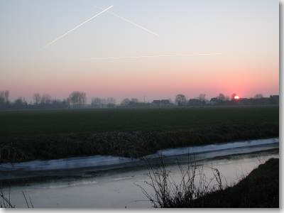 ContrailsBron: © KNMI De witte vliegtuigstrepen, die het zonlicht iets kunnen temperen, zijn kunstmatige wolken die ontstaan doordat uitlaatgassen van vliegtuigmotoren de hoeveelheid waterdamp en roetdeeltjes in de lucht op de vliegroute doen toenemen. Dat gebeurt meestal rond 10 kilometer hoogte in de atmosfeer, waar de lucht zeer koud is en het meer dan 40 graden vriest. |