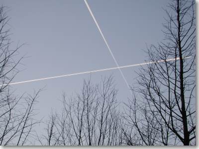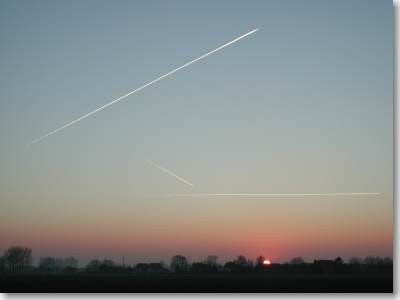 strepen die de vliegtuigen trekken, worden 'contrails' genoemd. |