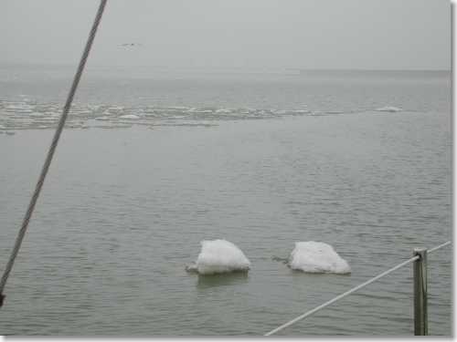 19 maart 2005 Havenmond Lelystad zuidzijde; veel ijs- en sneeuwresten |